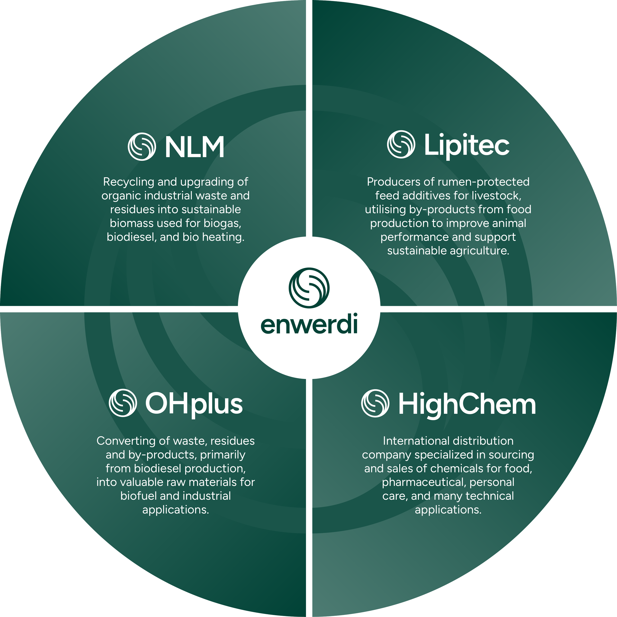 Enwerdi is a group of specialised industrial businesses enabling more circular resource use and supporting the transition to lower-carbon energy and materials. Our activities sit at the intersection of circularity, bioenergy, and industrial value chains.